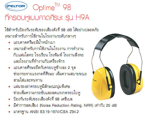 ครอบหูลดเสียงแบบคาดศรีษะ Peltor Optime 98 รุ่น H9A