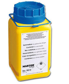 กล่องสำหรับทิ้งใบมีดที่ใช้แล้วเพื่อความปลอดภัยในการจัดเก็บขยะมีคม ป้องกันการเปิดฝากล่องด้วยระบบล็อคเมื่อกล่องเต็ม เพื่อให้แน่ใจว่าจะไม่มีใครมาเปิดำใบมีดออกมา ซึ่งอาจก่อให้เกิดอุบัติเหตุได้