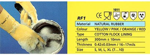 เป็นถุงมือผลิตจากยางธรรมชาติ- ภายในเคลือบด้วยใย COTTON