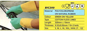 ถุงมือยาง เหลือง-เขียว BIC-200 TROPICOLOR