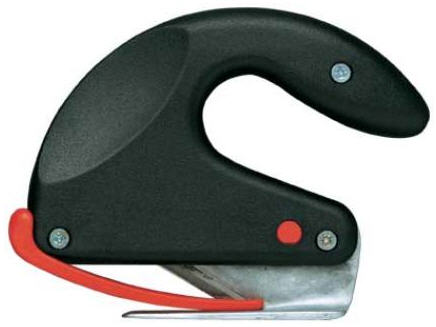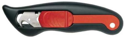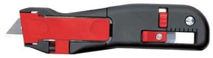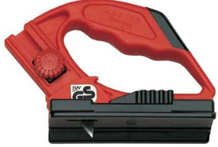 | ๊คัทเตอร์นิรภัย ใบมีดจะเก็บเข้าด้ามจับเองเมื่อตัวชิ้นงานเสร็จ ด้ามจับทำจากอลูมิเนียม ผ่านการทดสอบด้านความปลอดภัย จากคณะกรรมการของ German Safety Control Board (UV) |