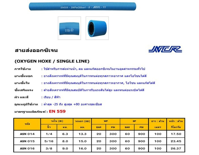 สายแก๊สเดี่ยว ออกซิเจน ยี่ห้อ NCR