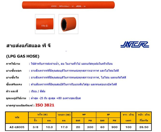 สายแก๊สเดี่ยว สำหรับ LPG ยี่ห้อ NCR
