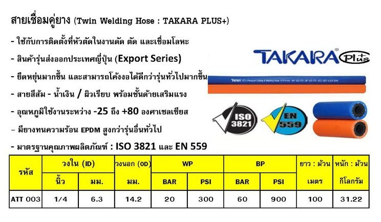 สายแก๊สคู่ สำหรับงานเชื่อมตัดโลหะ ยี่ห้อ NCR