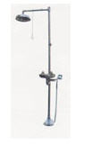 EYE WASH SHOWER ฝักบัวทำจากสแตนเลสขนาด 10 นิ้ว มีก้านดึงสแตนเลส ท่อส่งน้ำขนาด 11/4 นิ้วทำจากสแตนเลส อ่างล้างตาทำจากสแตนเลสขนาด 11 นิ้ว หัวฉีดสแตนเลส 2 หัว พร้อมแป้นเหยียบ