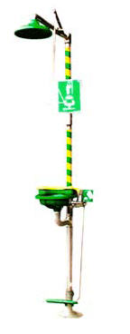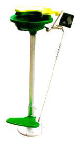 EYE WASH SHOWER ฝักบัวทำจาก ABS สีเขียวขนาด 10 นิ้ว มีก้านดึงสแตนเลส ท่อส่งนิ้วขนาด 11/4 นิ้วทำจาก GALVANIZED อ่างล้างตาทำจาก ABS ป้องกันการเสื่อมสภาพจากแดด ทำงานได้ทั้งการกดที่มือ หรือแป้นเหยียบบนพื้น