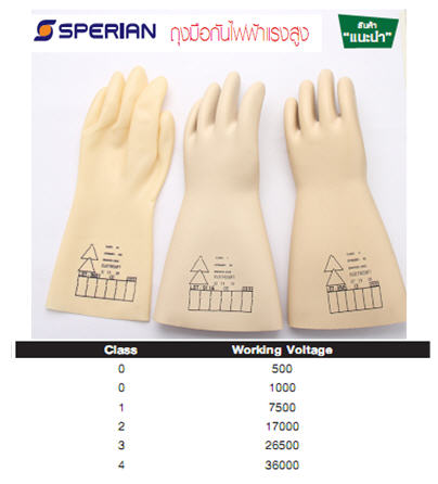 ป้องกันไฟฟ้าแรงสูง Class00 - Class 4 สำหรับใช้งานป้องกันกระแสไฟฟ้าแรงสูง ตั้งแต่ 500 -36,000 โวลท์