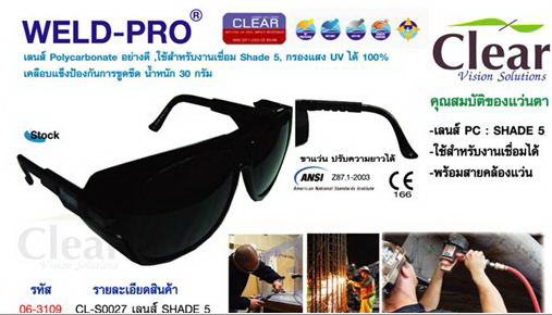 แว่นตานิรภัย สำหรับงานเชื่อม Shade 5