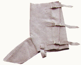 สนับแข้งหนังท้อง สีขาว มีซับใน แบบสายรัดเข็มขัด) ความยาว 13 นิ้ว ความหนาของหนัง 1.3 มม. มีเข็มขัดรัด เพื่อปรับระดับของผู้สวมใส่ได้