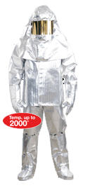 ALUMINIZEDชุดกันความร้อนและรังสีความร้อน ผลิตจากผ้าเคลือบALUMINIZED ประกอบด้วย หมวก เสื้อ กางเกงถุงมือ รองเท้า ใช้สำหรับงานหน้าเตาหลอม หรือเตาอบความร้อน