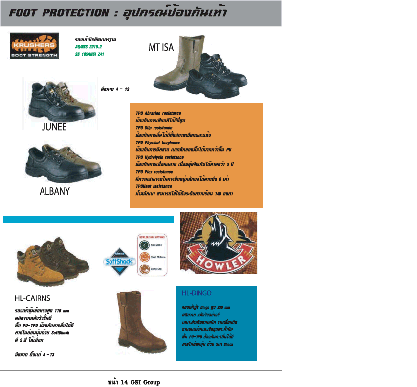 ศูนย์รวมรองเท้า เซฟตี้ ครบวงจร นำเข้า และผลิตในประเทศ มาตรฐาน CE EN หรือ จะเป็น มอก. เรามีจำหน่าย สนใจติดต่อ บ.จีเอสไอ อินเตอร์เนชั่นแนล (ประเทศไทย) จำกัด โทร.02 1755651 แฟกซ์ 02 1755652 email : gsicorp@hotmail.com